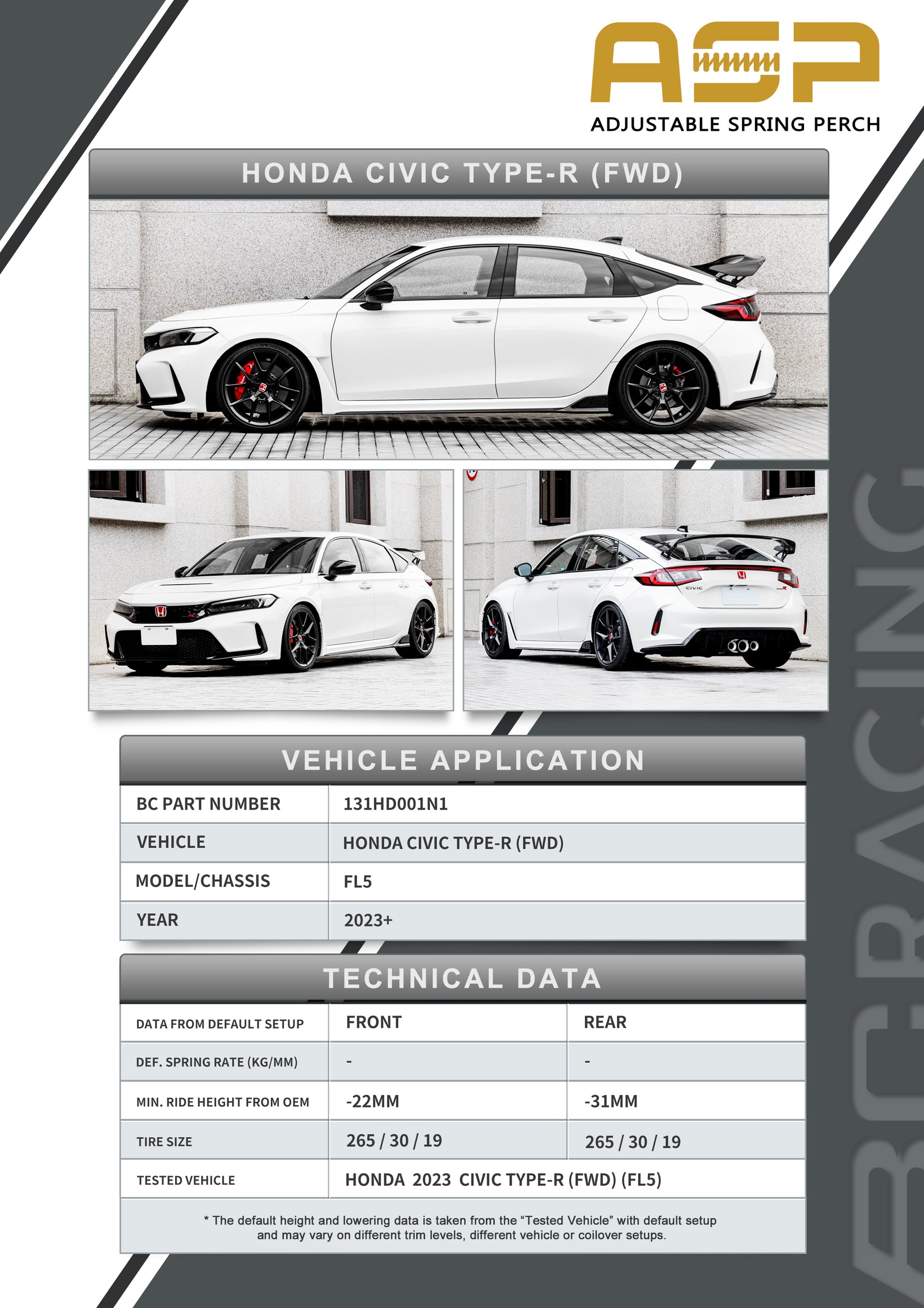 BC Racing ASP Series: 23+ Honda Civic Type R FL5 (Without Front Camber) is backordered and will ship as soon as it is back in stock.
